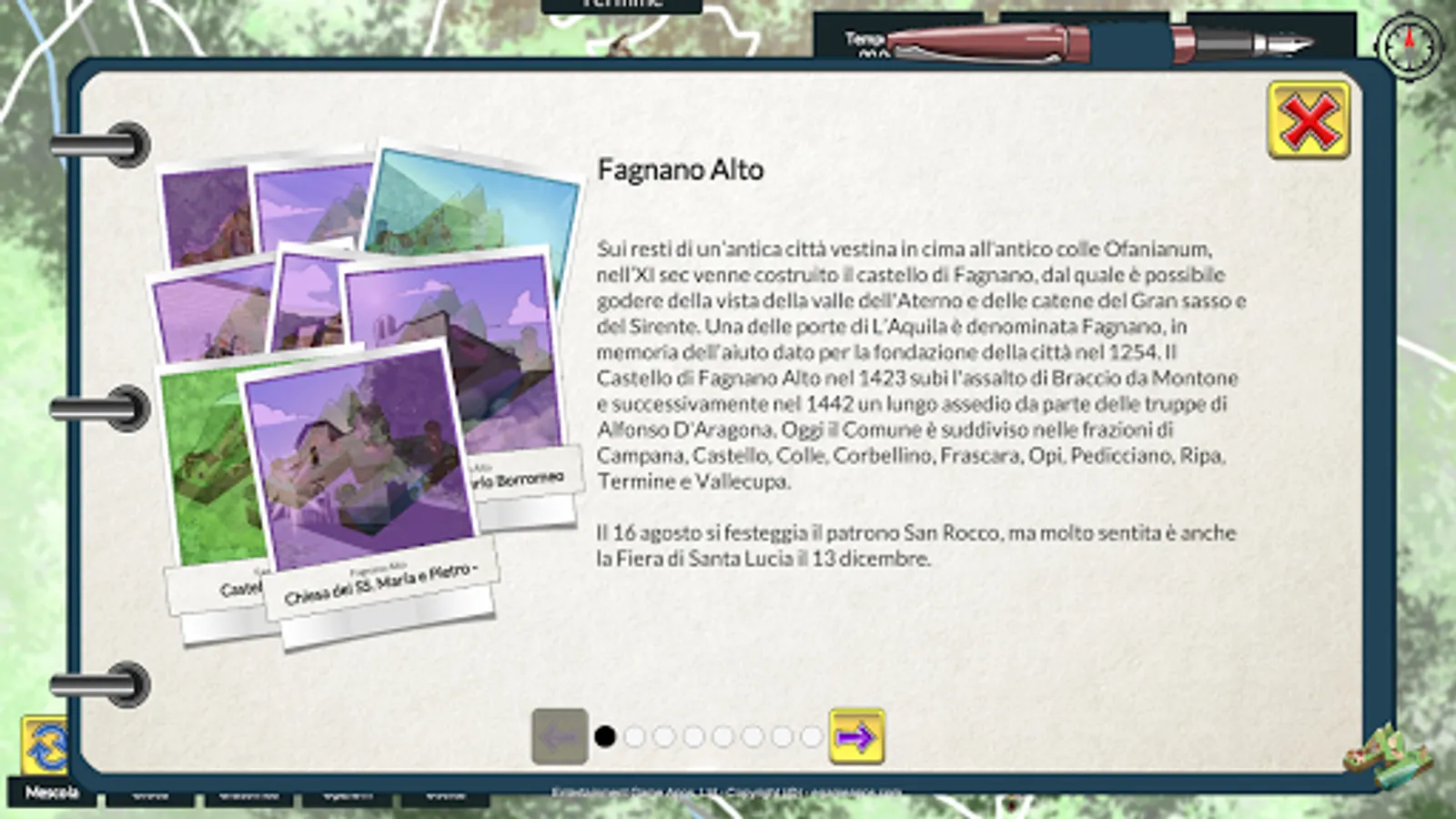 Memories is a game created as part of the regional project LAB8, which aims to revitalize 11 municipalities in the province of L'Aquila, heavily affected by the 2009 earthquake. Through the game you have the opportunity to explore the local heritage: landscapes, monuments and artistic assets scattered in the 11 Abruzzi centers.