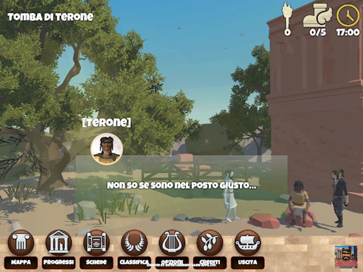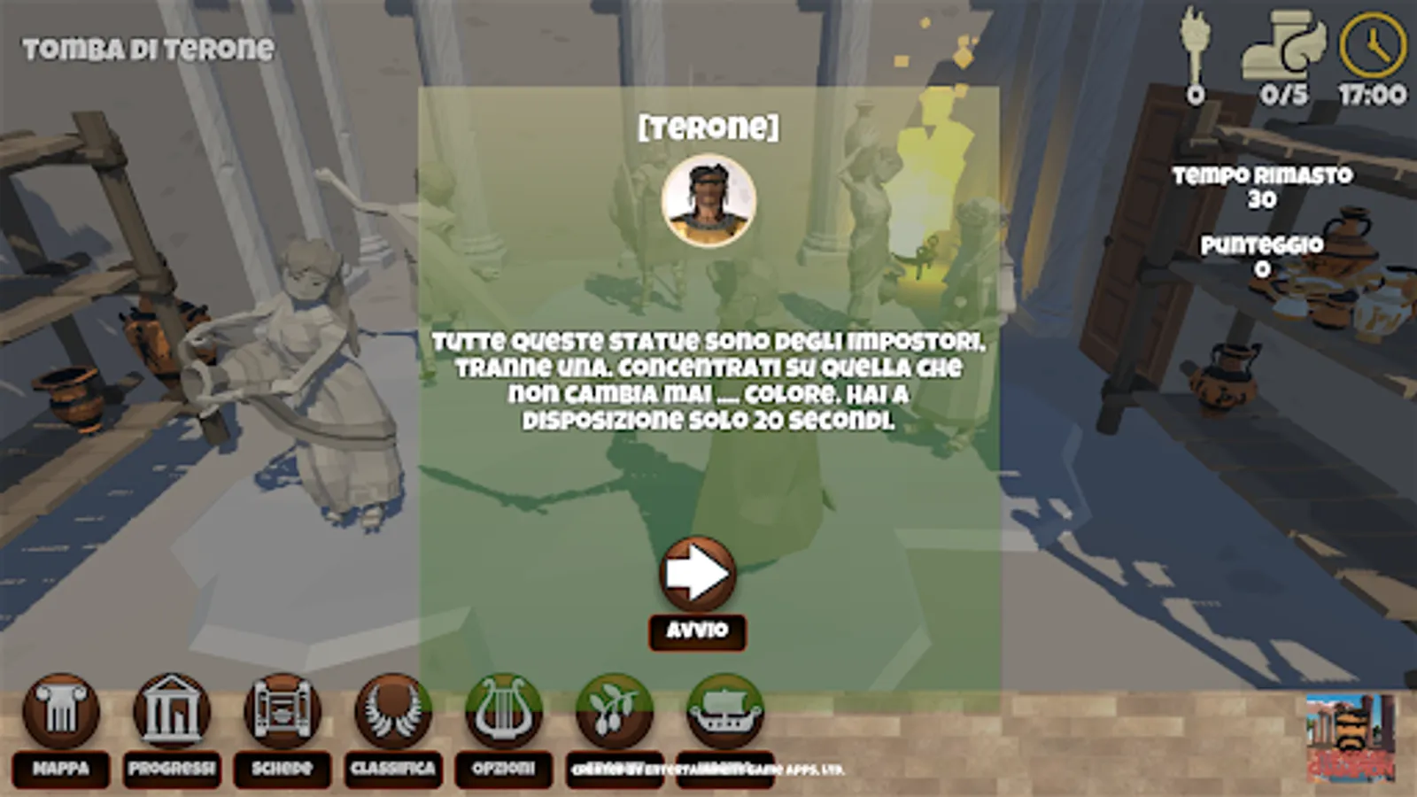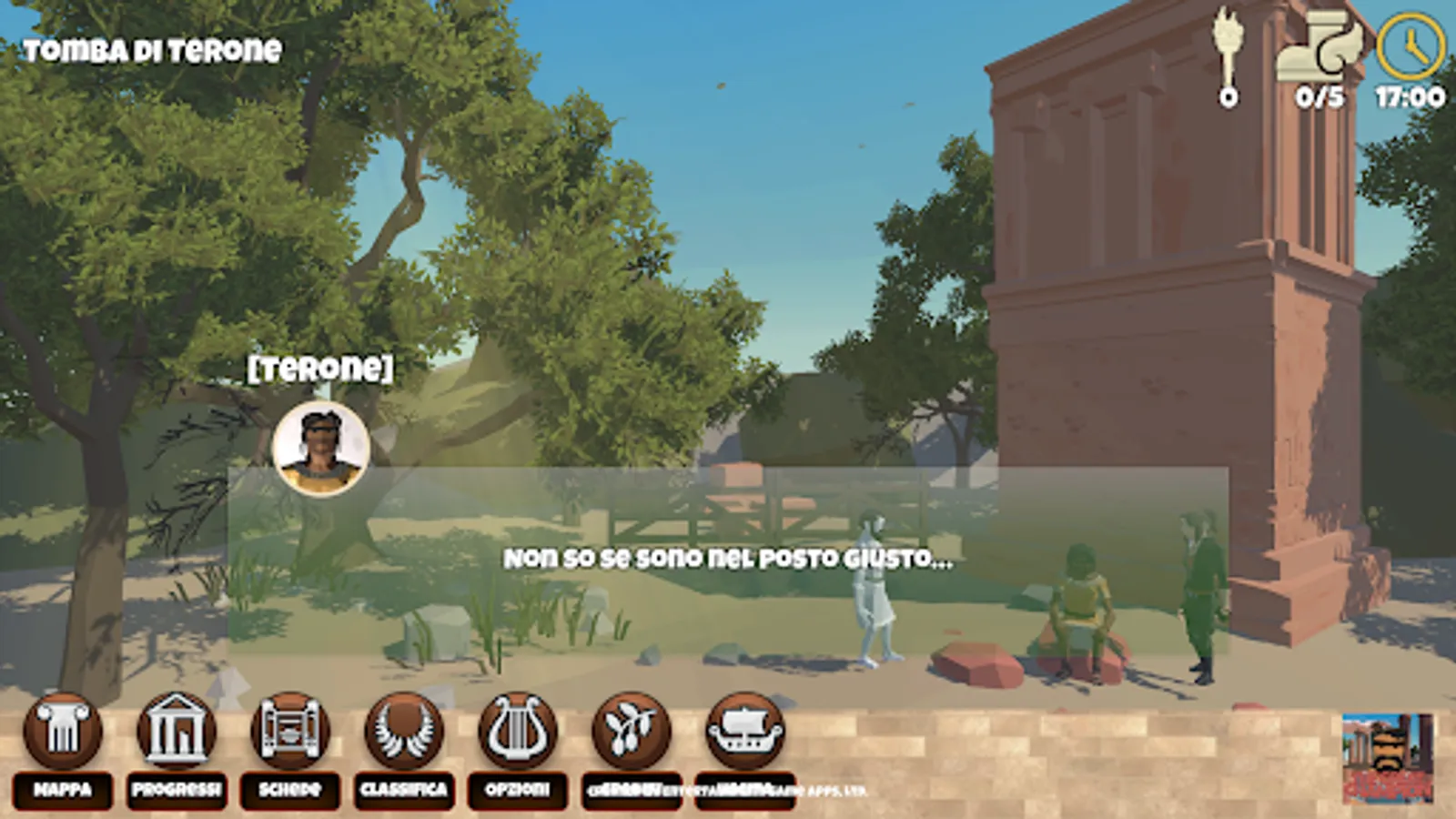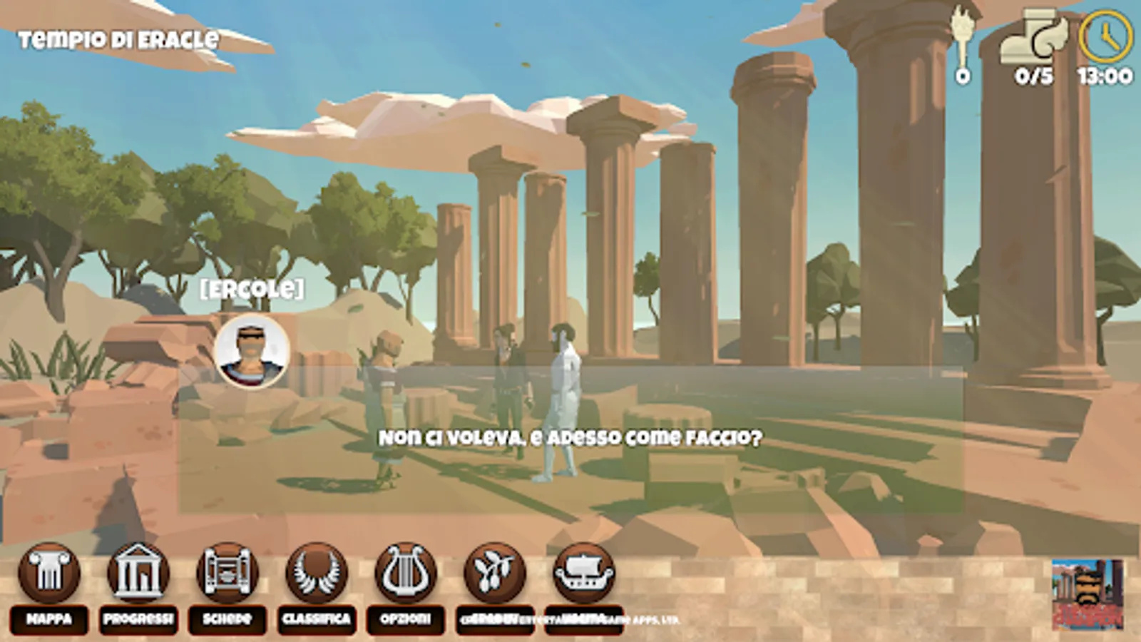 At the end of the tests a portal opens, a temporal rift that leads Silvia and Epimono towards the ancient Eraclea Minoa, when it was still intact and prosperous. To reach the agora where the city is ready to celebrate him, Epimono has to face one last orientation test (he hasn't been back to Eraclea for a few centuries, after all!). Through the labyrinth minigame, Epimono and Silvia reach the agora but when everything seems ready for the city celebrations, Esseneto appears. “If you really want to be Sicily's greatest champion, you'll have to face me first!”.