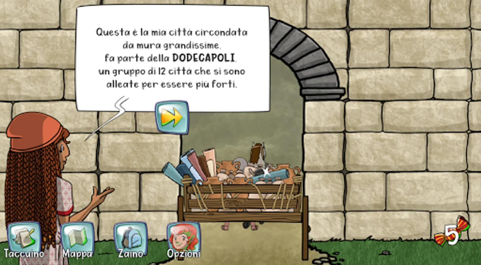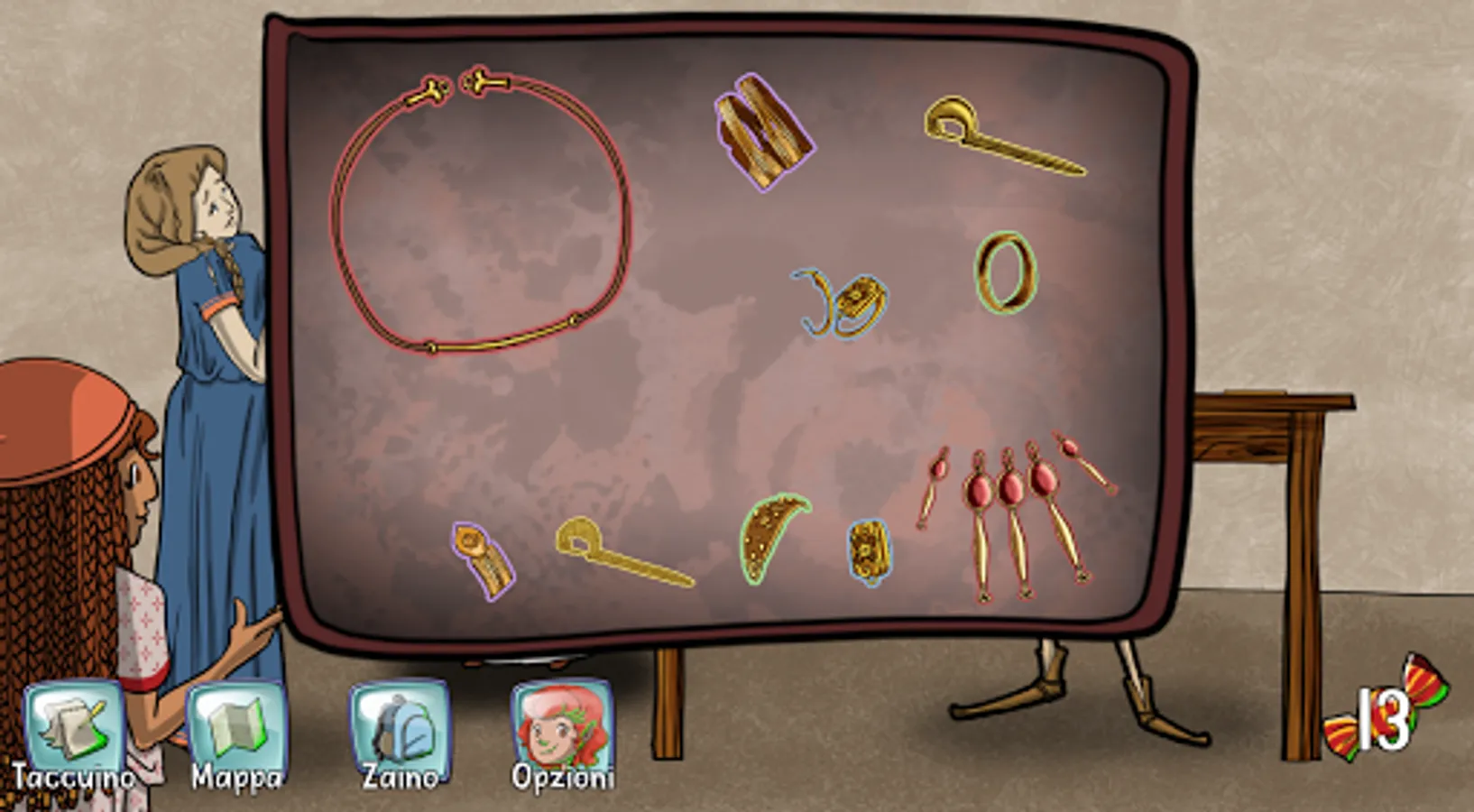 The aim of the game is to be able to find the vase in order to return to the present. To help the player there will be Velia, an Etruscan girl of about 10 years who will accompany him along the 8 stages of the journey, providing suggestions and telling the customs of his people from his perspective as a child. During the adventure the player will meet different characters and will find himself immersed in environments typical of the Etruscan era: in this way the children will have the opportunity to learn and deepen the History they study at school, having fun. The project was created in collaboration with two professional archaeologists who, for years, through the association M (u) oviMenti and the Archeokids project, have been dealing with, among other things, heritage education aimed at children. Furthermore, the video game is conceived as the first episode of a larger project that aims to create a series of chapters dedicated to ancient history in which gaming is declined for children and is used to promote the dissemination of history and archeology .