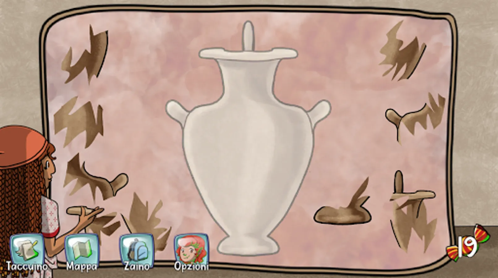Along the way, in fact, the child will have to solve some puzzles and games in order to proceed from level to level and, from time to time, will receive some "pills" of information regarding this ancient people. At the beginning of the story the player / protagonist is encouraged by his parents to visit an archaeological museum and from there, thanks to a strange luminous vase, he will begin his unexpected journey back in time.