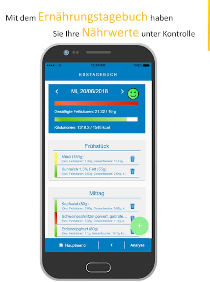 Bring a digital food diary and have at all times the individual nutritional accounts under control.