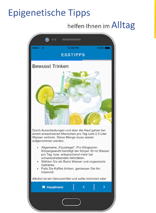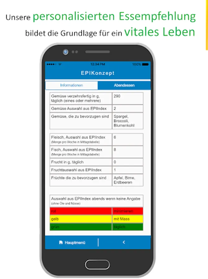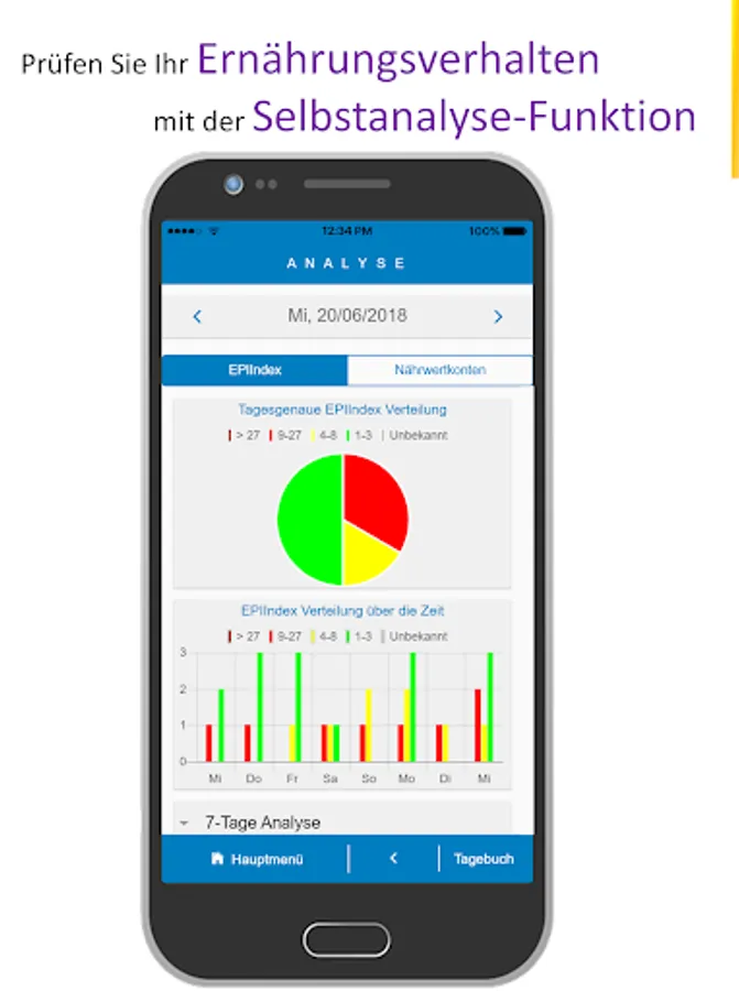 With the self-analysis functionality you gain insight into your eating habits and the ability to review the epigenetic targets. Our EPI Buddy gives you direct feedback and guides you to a vital nutrition style.