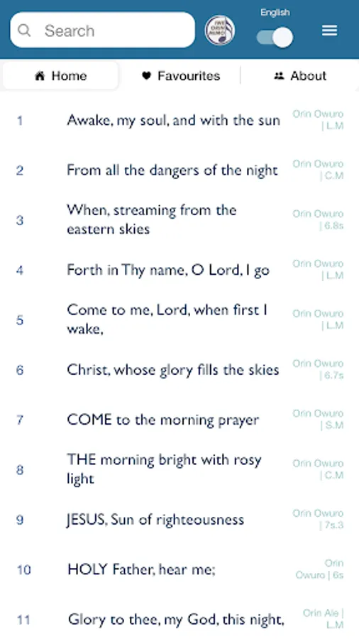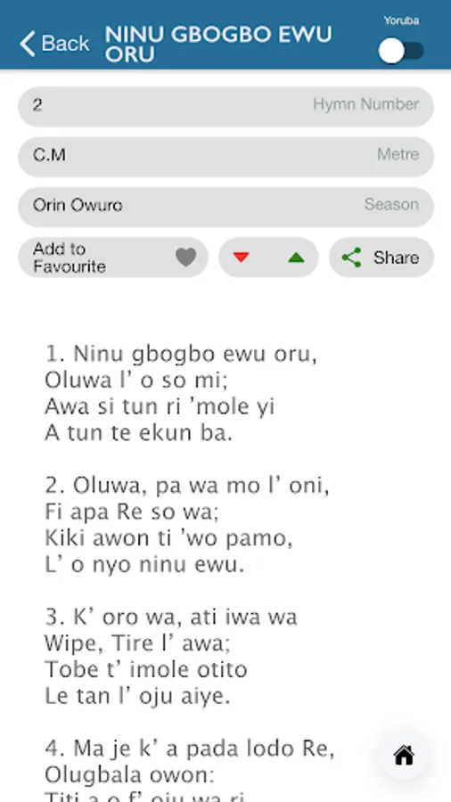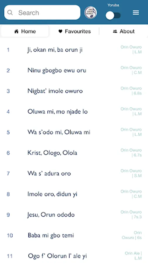 This App contains Lite Version of the Anglican Hymn Book also known as Iwe Orin Mimo which a Hymnal Used by Anglican churches in Nigeria. It contains the English and Yoruba equivalent of each hymn.