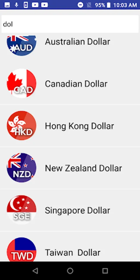 Dollar ,Yen , Euro , Yuan , Pound , Real , Peso , Dirham , Rupee , Dinar , Ruble , Won ,Bolivar, Riyad, Krone, etc.