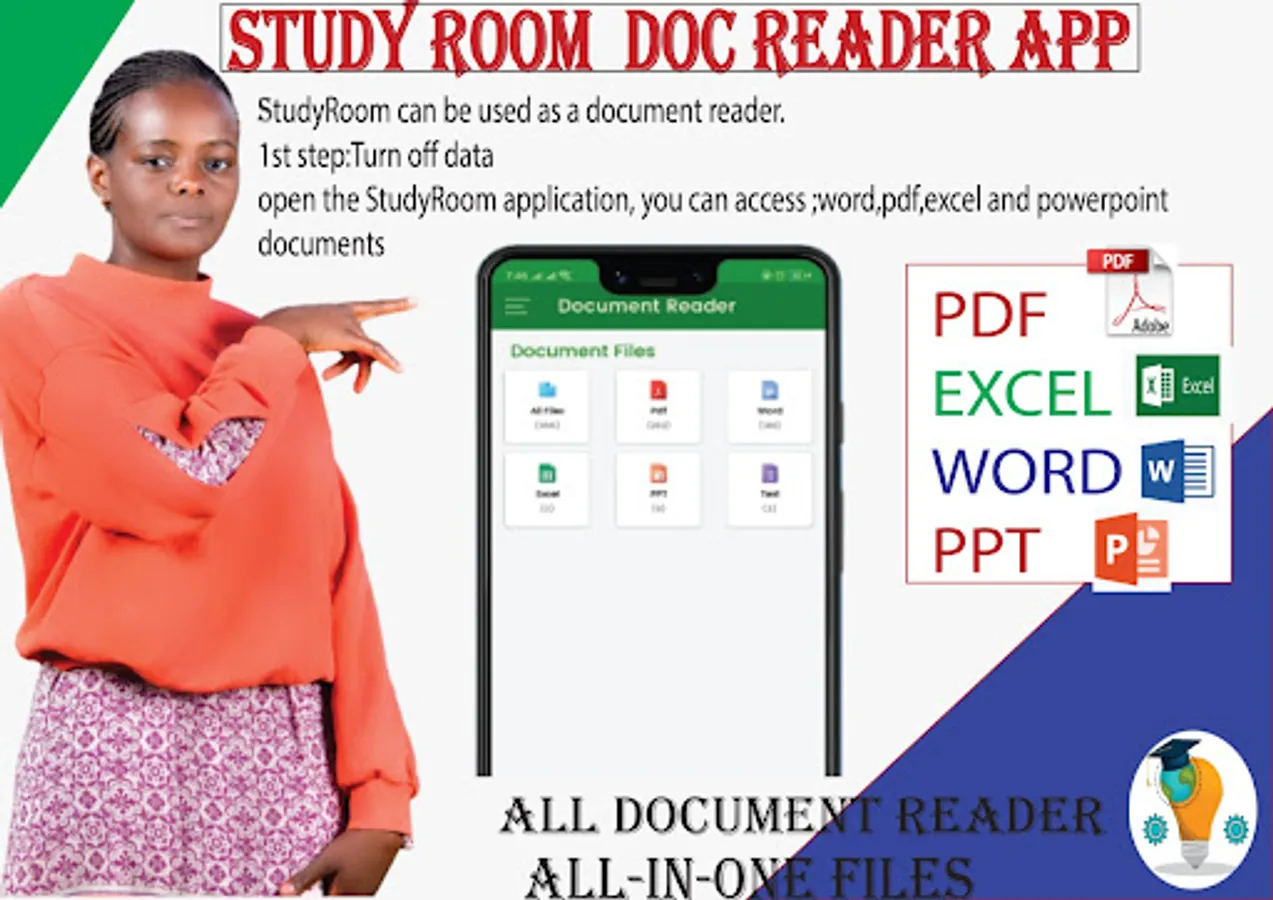 Looking for a reliable, free document reader for all your studying needs? Look no further than StudyRoom app! With our user-friendly interface and support for a variety of file types, including PDFs, PPTs, XLXs, and Docs, you'll never struggle to open your study materials again. StudyRoom app is specifically designed with students in mind, so you can easily access and read all your course documents on the go. Download StudyRoom app today and take the first step towards stress-free studying!