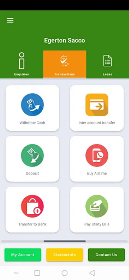 The Application Achieves the following: 1.Funds Withdrawal 2.Funds Deposit 3.Loan Application 4.Enquiries 5.Airtime Purchase 6.Balance Enquiry 7.Inter account Transfer 8.Bill Payments