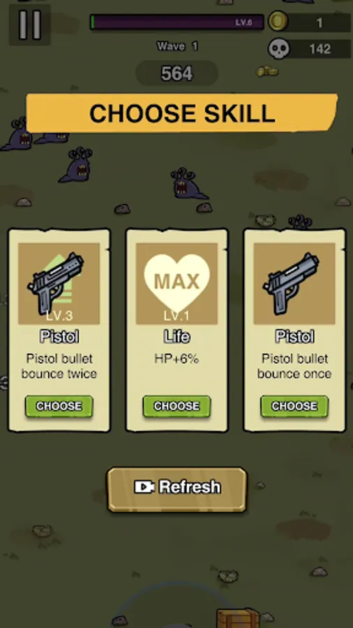 Gather materials to gain experience and get items from the store in waves of enemies.