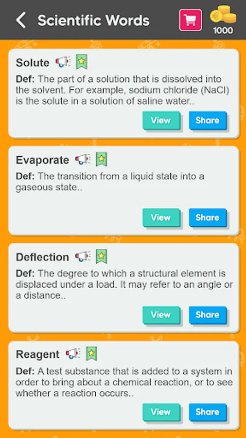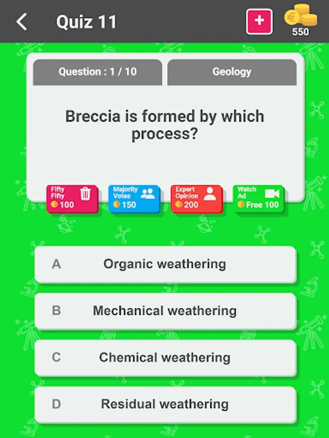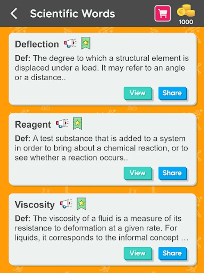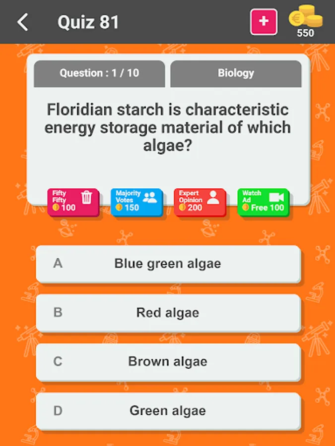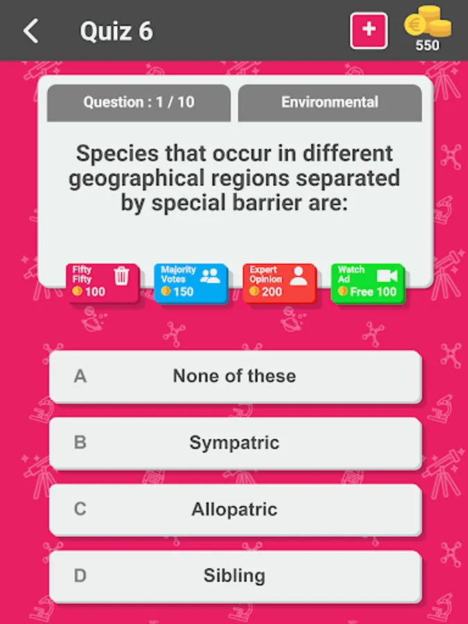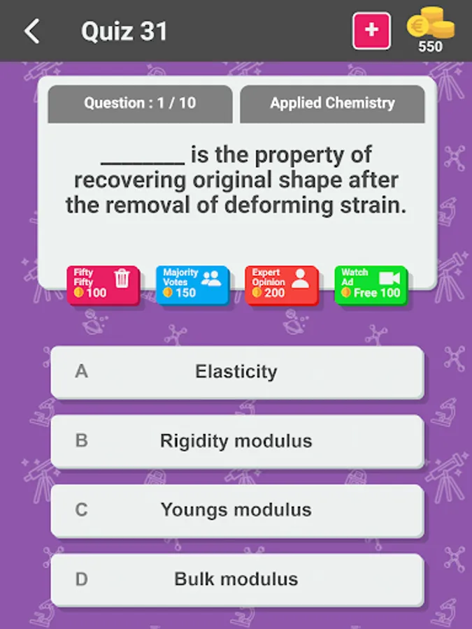 Science master is an ultimate science quiz game that contains 9500+ science questions. This game will help you to increase your science knowledge. There are 1500+ scientific words with definitions and context are included in the game that will help you to learn new concept every day. After completing all quizzes you will be very confident about scientific terminologies and concepts.