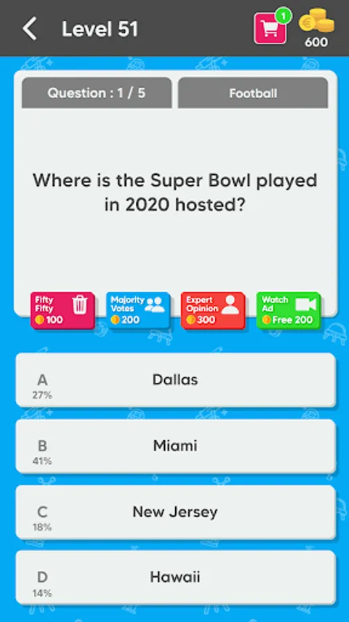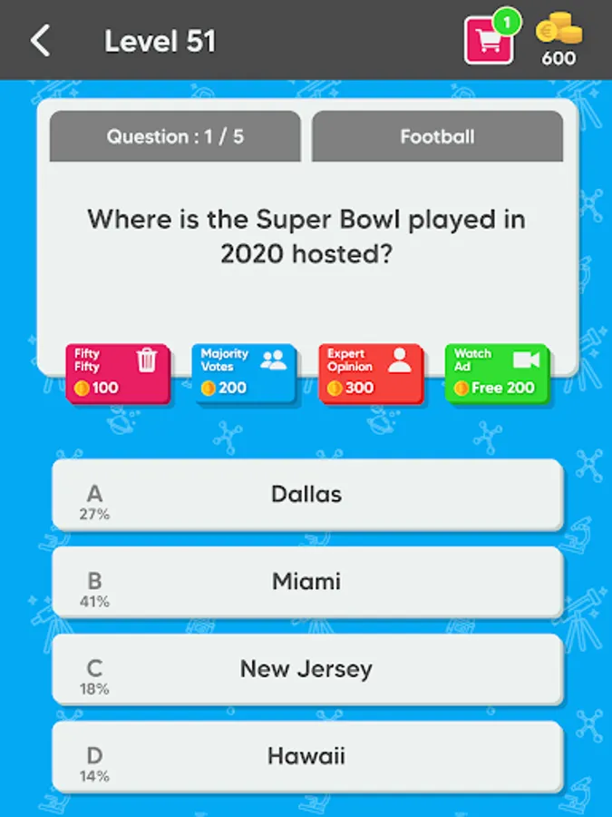 💡 Hint System: Utilize three types of hints - Fifty-Fifty, Majority Votes, and Expert Opinion.