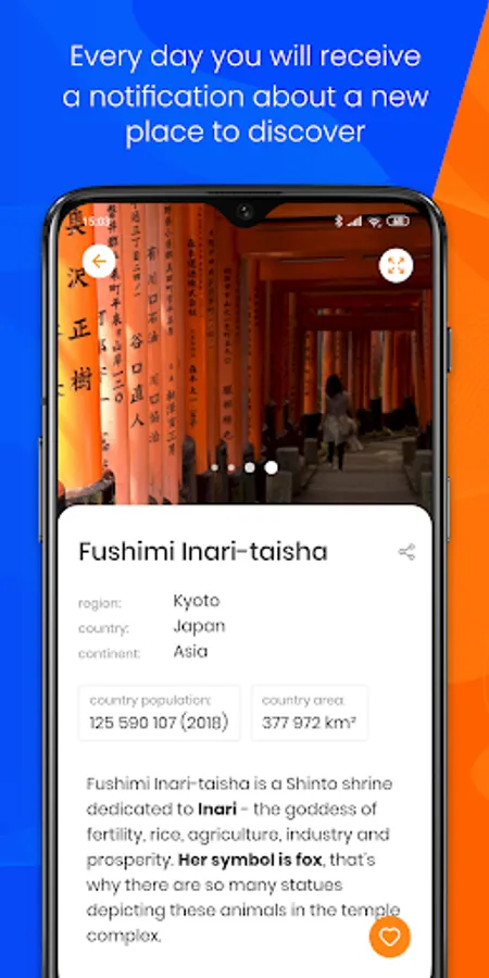 * Every day you will receive a notification about one of the most charming places in the world. The short, but full of interesting facts, information will be completed by a stunning photo.