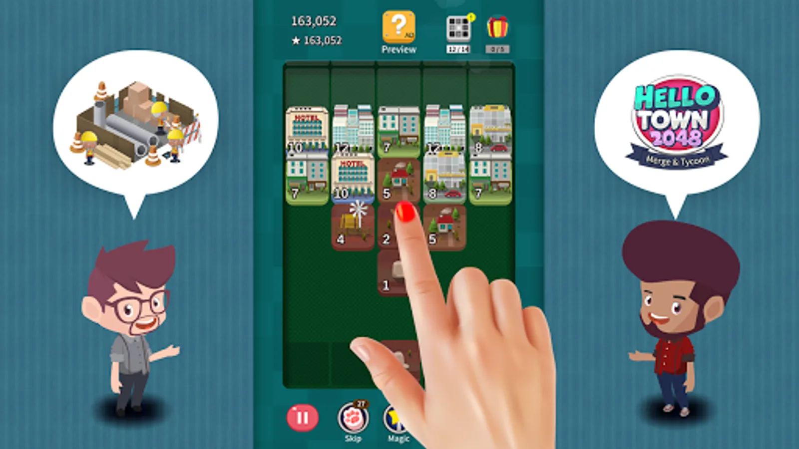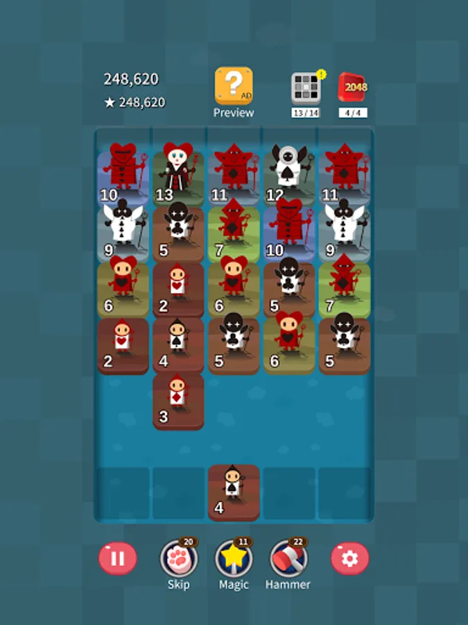 - Use 3 kinds of items(Skip, Magic, and Hammer) that help you to get a higher score.