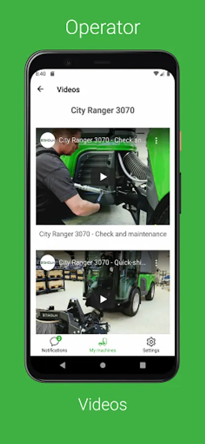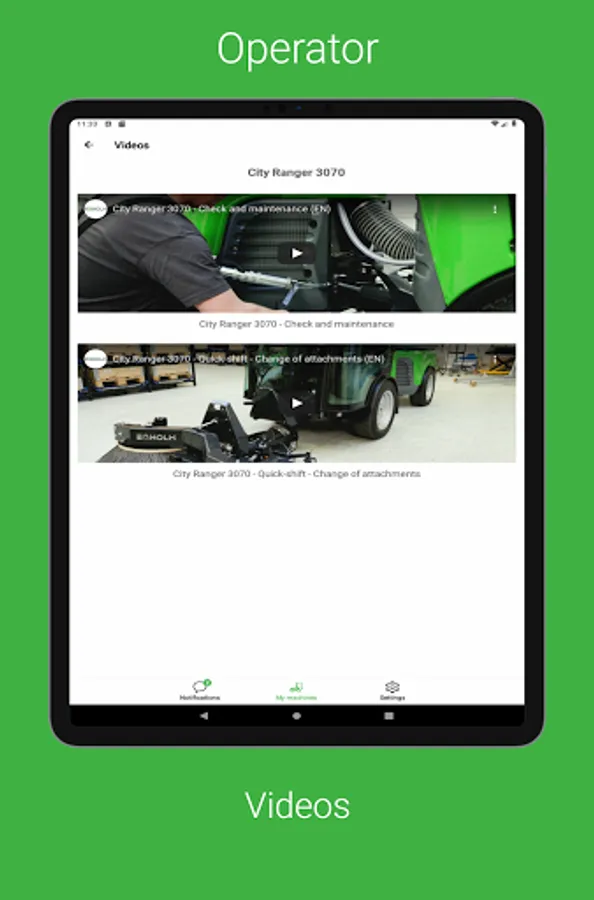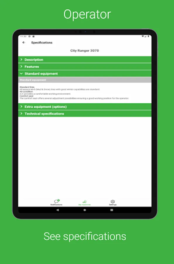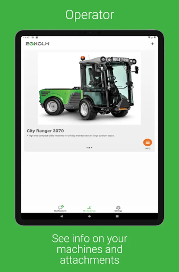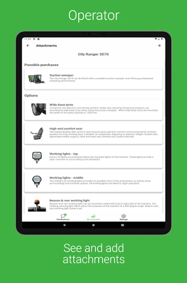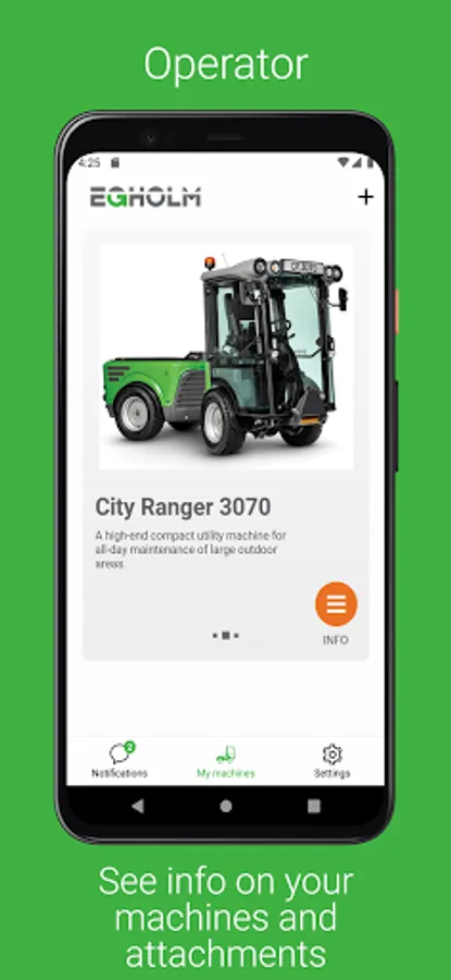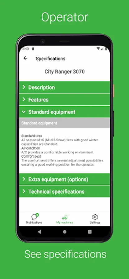 When your distributor registers the machine, you as the operator of the machine, always have information at your fingertips. You will find manuals, brochures, technical specifications, video clips, information on attachments and much more.
