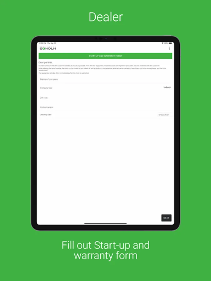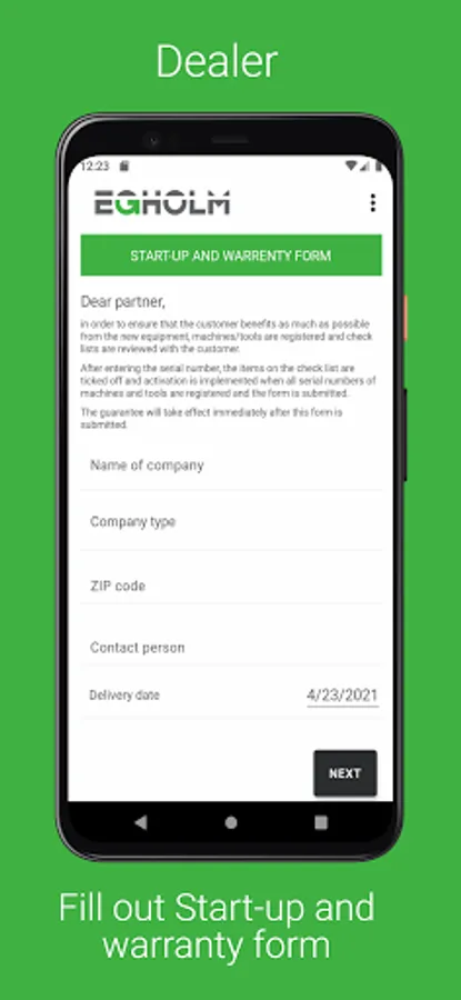 We have simplified the process so that it is easy for you as an Egholm A/S distributor to deliver the machine to your customer so that they get the most benefit from their new equipment and at the same time start their warranty period.