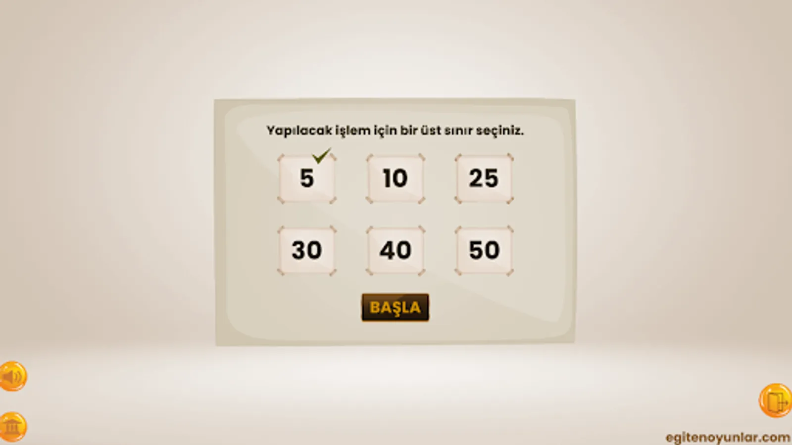 The user can improve himself step by step by choosing the upper limit in the sections he will play.