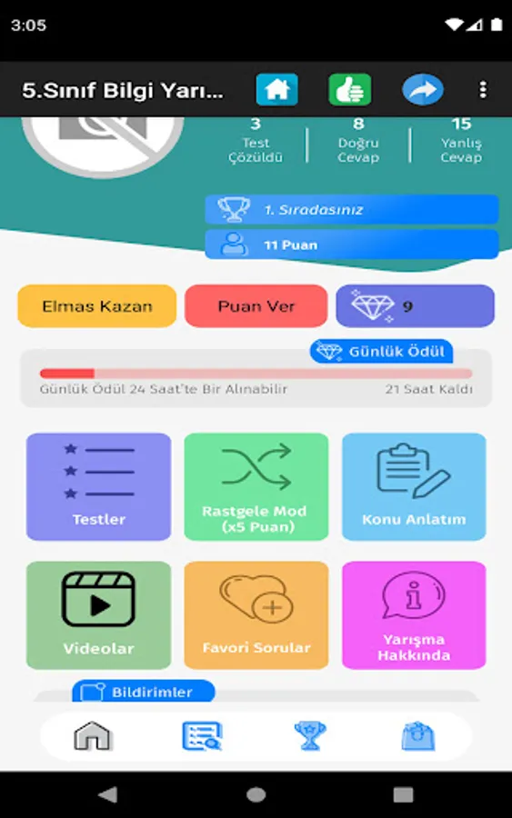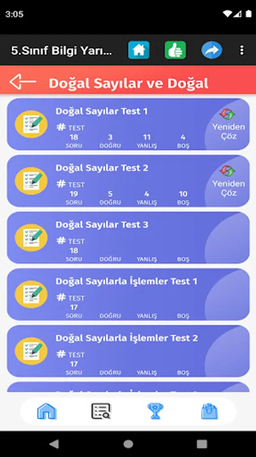💥 In the tests you solve in the categories, your last correct and incorrect numbers are shown.
