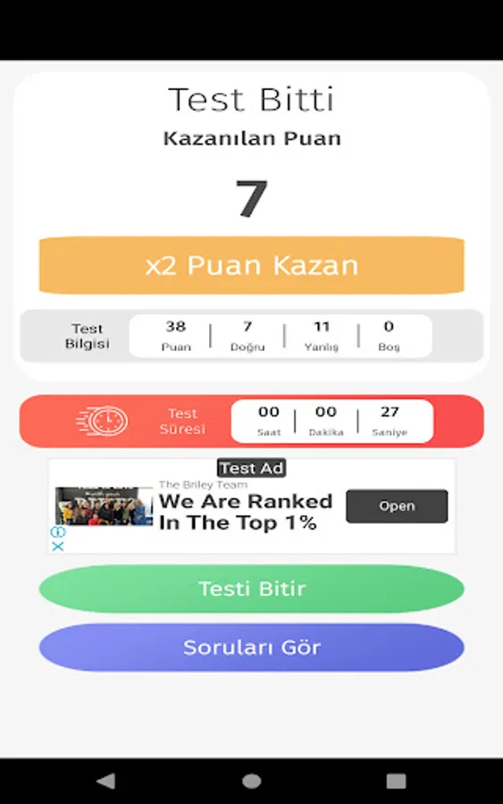 💥 You can make your score x2 by watching rewarded ads after the test.