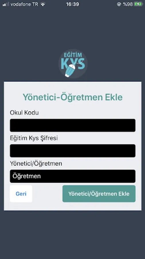 Within the application, there are promotional information of Eğitim Kys, social media links and Eğitim Kys Information System.