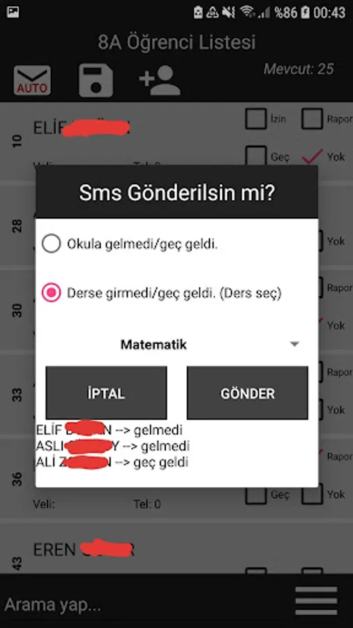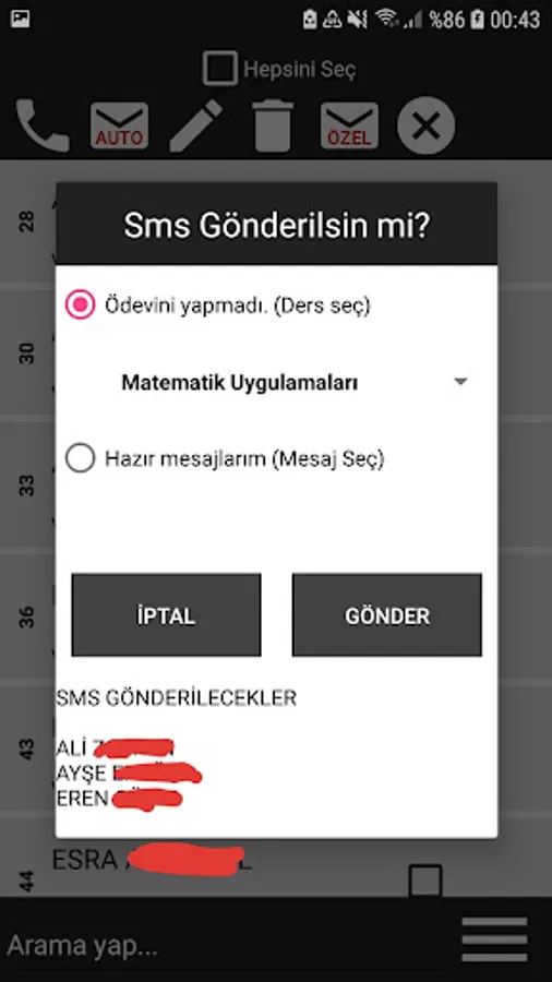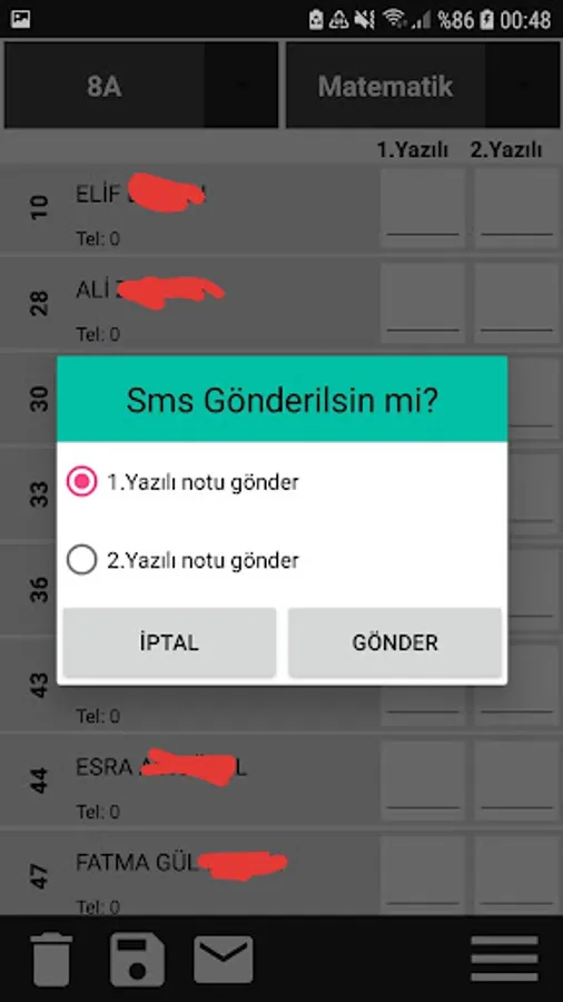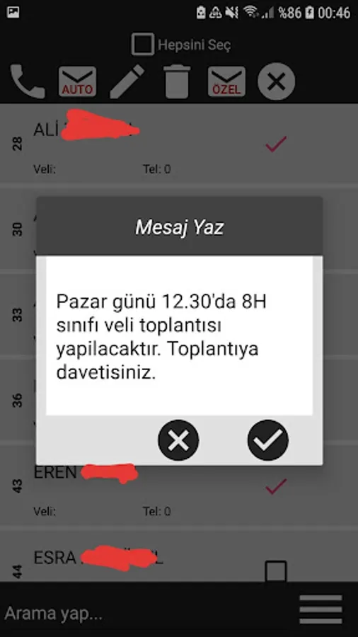 You can easily create and send Sms by transferring your class lists from the e-school to the Excel format lists.