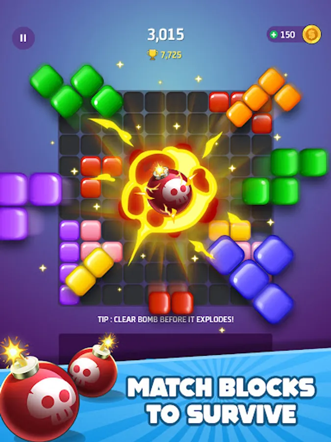 💣If you're looking for a bit more excitement, Survival mode is for you. You have to make your best score before the bomb explodes, adding a time pressure that will keep you on your toes. The bombs come closer and closer with each passing move, so you have to think fast and make the best use of your moves to stay alive.