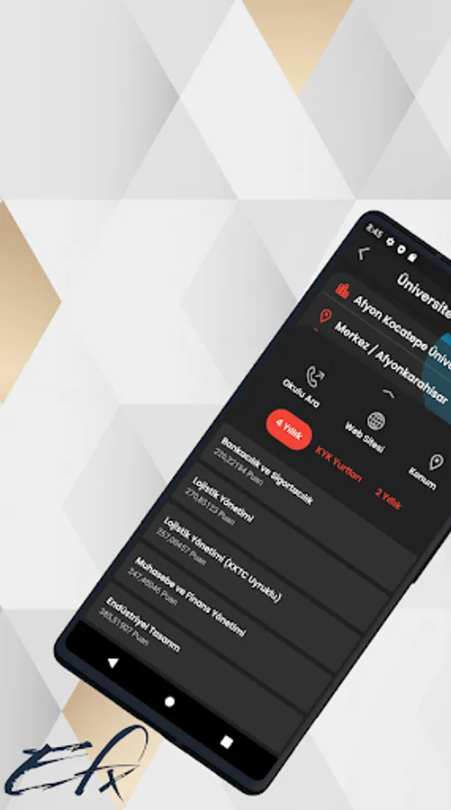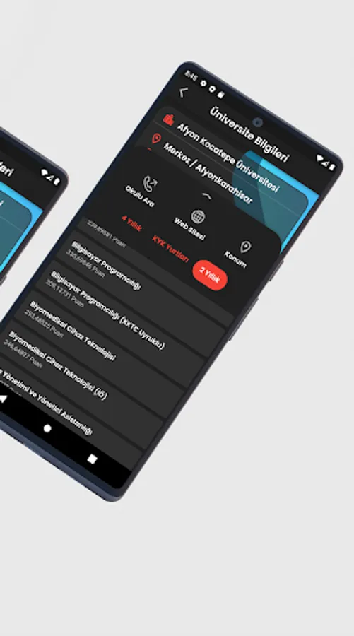 Our application includes 230 universities, 30.000+ departments, 773+ kyk dormitories. Our aim in making this application is to offer all the information they are curious about in the easiest way to our students who will start a new university and to our friends who are already studying at university and want to study new departments.