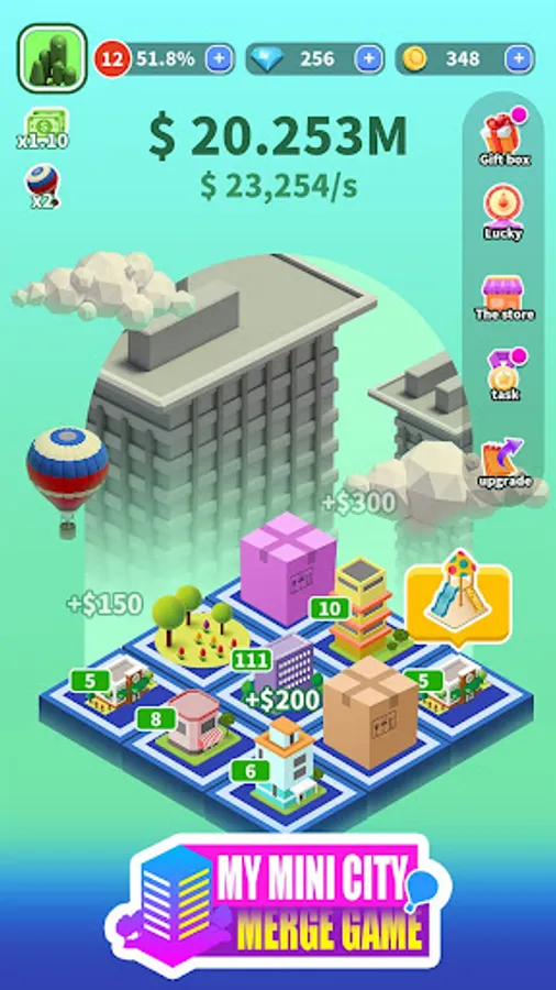 Drag your finger to merge two buildings of the same level to obtain a higher-level building, and merge them in turn to obtain a higher-level building. The higher the building level, the more economic benefits. Using some props and completing some tasks can also get rich profits, and some buildings will be randomly generated in the venue, which should be collected as soon as possible to speed up the construction speed. The site is ready, come and start the construction road.