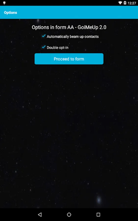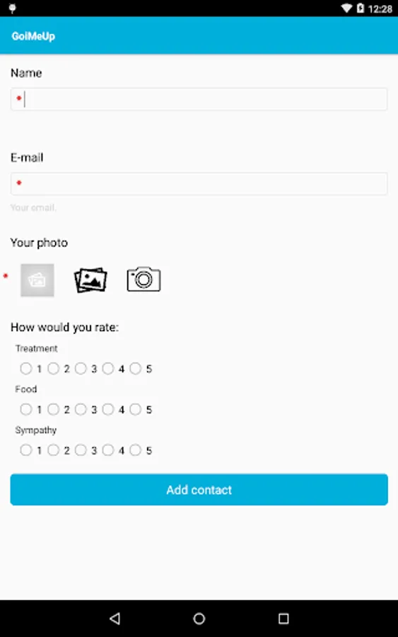 GoiMeUp makes it easy to add contacts to your E-goi mailing list straight from your tablet or smartphone (Android 3.0 or higher is required). Simply select a sign-up form in your E-goi account and use it to add contacts to your list on the go! No Internet connection is needed - GoiMeUp will store your contacts and upload them whenever you want. Perfect to acquire opt-ins at stores, restaurants and tradeshows!