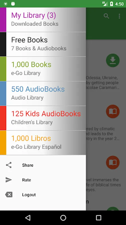 IMPORTANT: This e-GO! Library Android App is designed to be a companion to the e-GO! Library product line. It is intended to allow those that have purchased an e-GO! Library (USB memory flash drive pre-loaded with books) to access their collection on any Android device without direct USB connectivity.