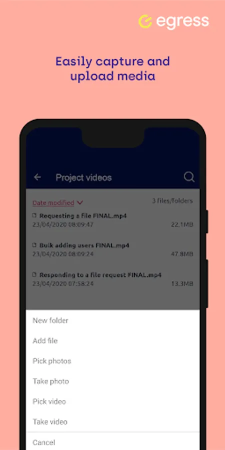 Use the Egress Secure Workspace for Mobile app to securely capture and upload files to your Secure Workspace wherever you are.