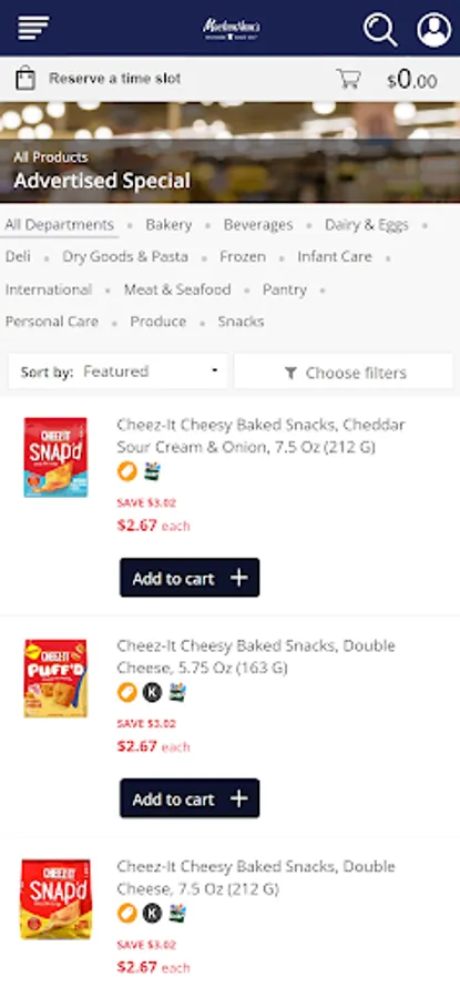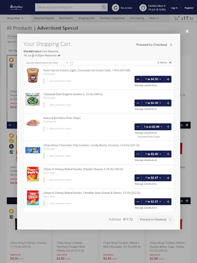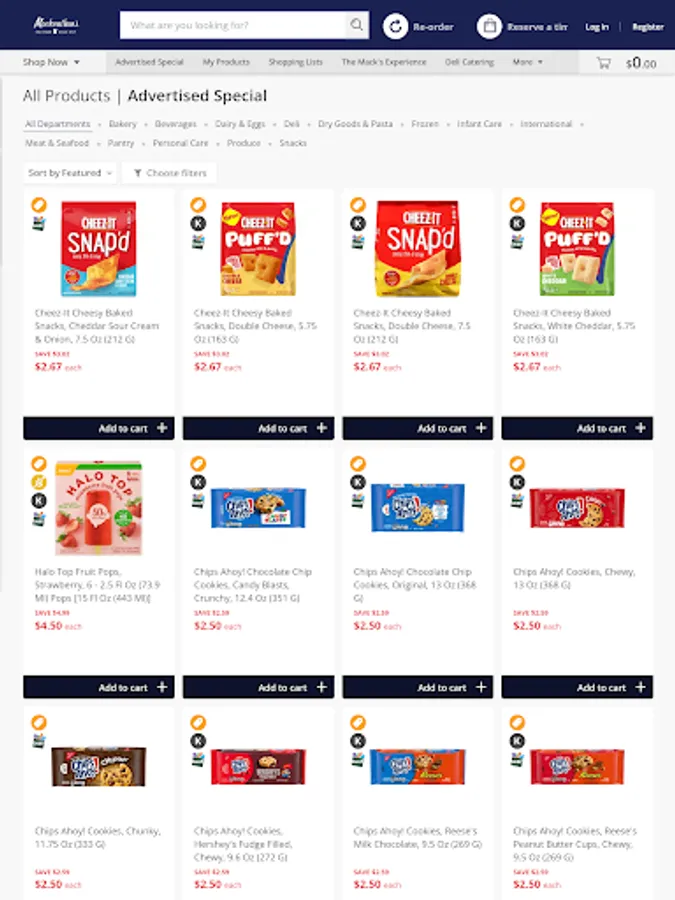 Use your past orders to quickly select and order your groceries, leveraging your favorites, order history and recommended items. Just browse the weekly ad or the entire store, select your items and order for pickup or delivery, where available.