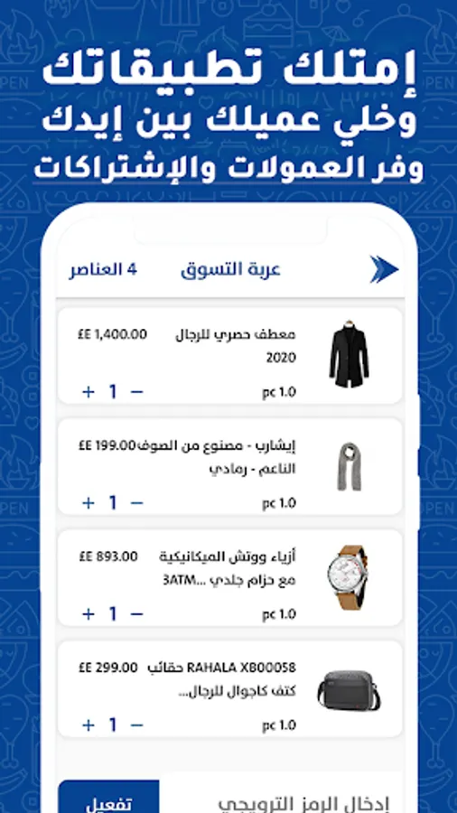 حزم برمجية متكاملة ومترابطة ، بحصولك علي تلك الحزم سيصبح لديك تطبيق بإسم متجرك وبهويتك ، يمكن للمستخدم الطلب من خلاله بكل سهولة ايضا تحصل علي تطبيق اخر لرجل الديلفري لديك يستقبل من خلاله تلك الطلبات تحصل ايضا علي لوحة تحكم رئيسية تستطيع ان تدير وتطلع علي كل عمليات البيع وتقارير عن حالة المبيع والعملاء وكافة التفاصيل كما يوجد لكل فرع لوحة تحكم خاصة به لاستقبال الطلبات .