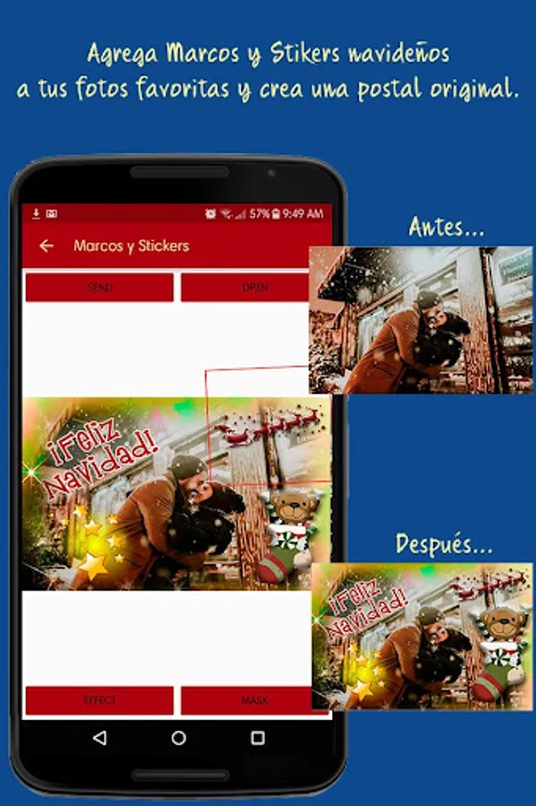 2- Add Christmas frames and Stikers to photos that you like to turn them into original Christmas cards.