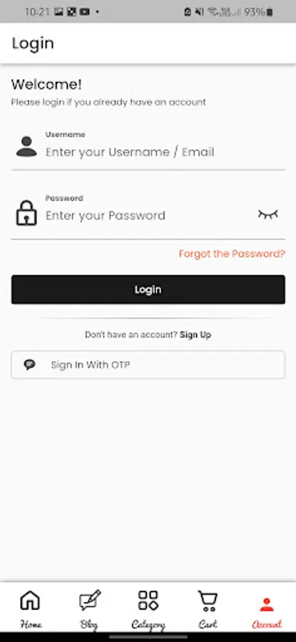 4- Log in with either the phone number or the email and the password that you registered in creating the account