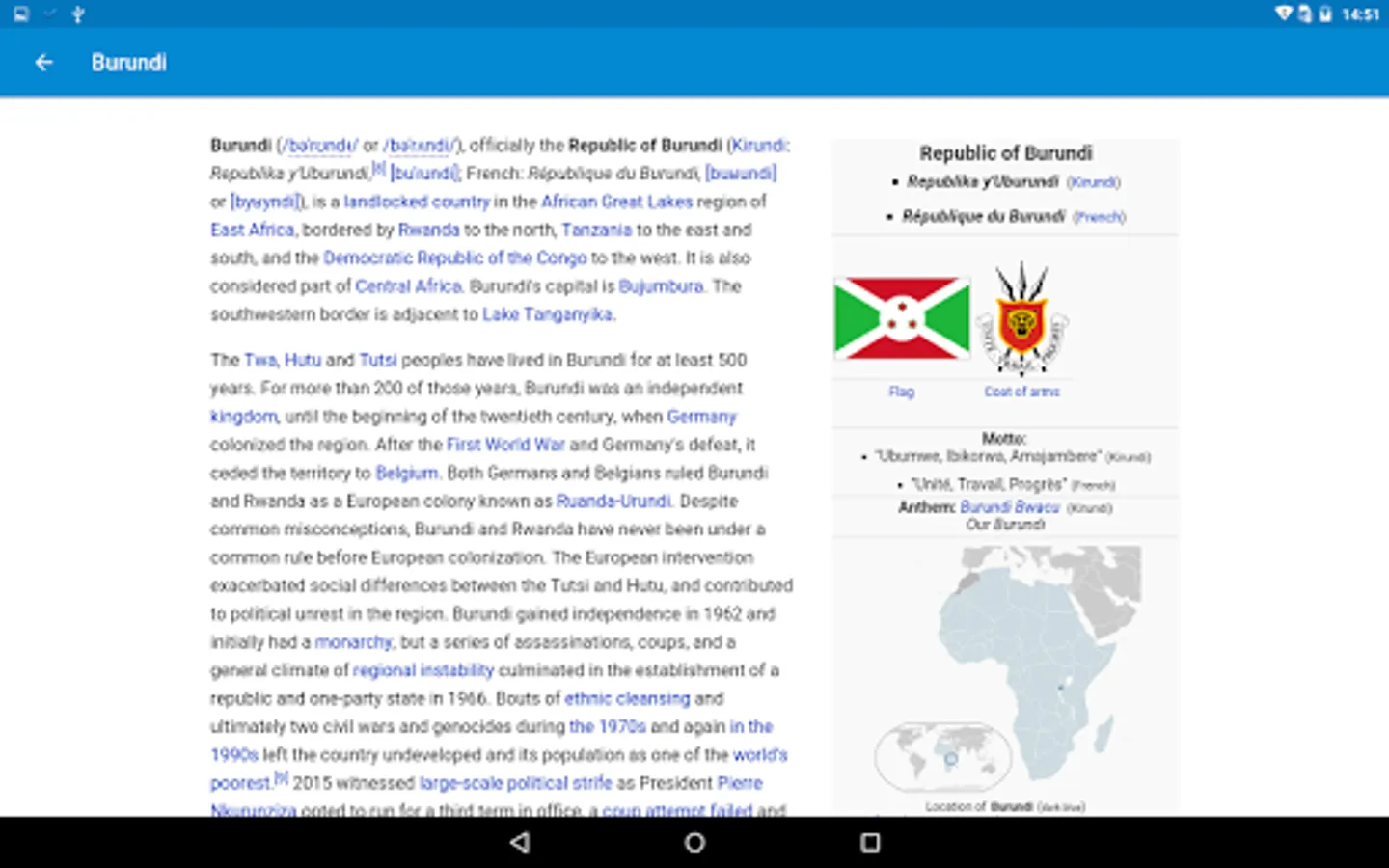 we added Favorites and Recent sections to enable offline reading, only open the country page while you are connected. then you will find the country on the recent tab and you can browse it offline