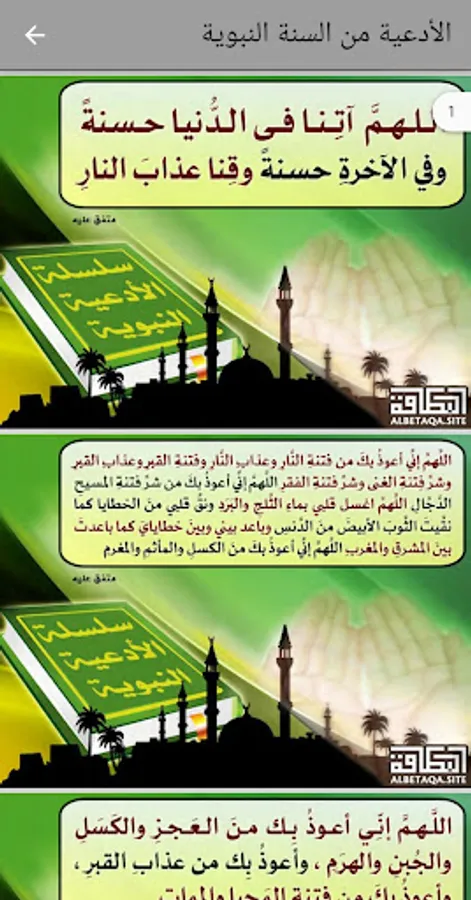 The application includes supplications and remembrances for the fortress of the Muslim, all supplications for all cases related to religious supplications and remembrances and for the Muslim