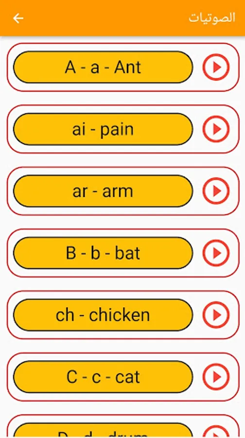Words: A section that teaches English words and vocabulary with their examples.