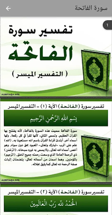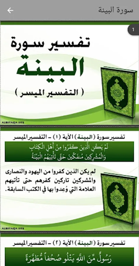 You will find an interpretation of the Holy Qur’an in its entirety, from Al-Fatihah to Al-Nas, in a very simple and uncomplicated way. I hope you like it, and do not forget us in the interest of your prayers