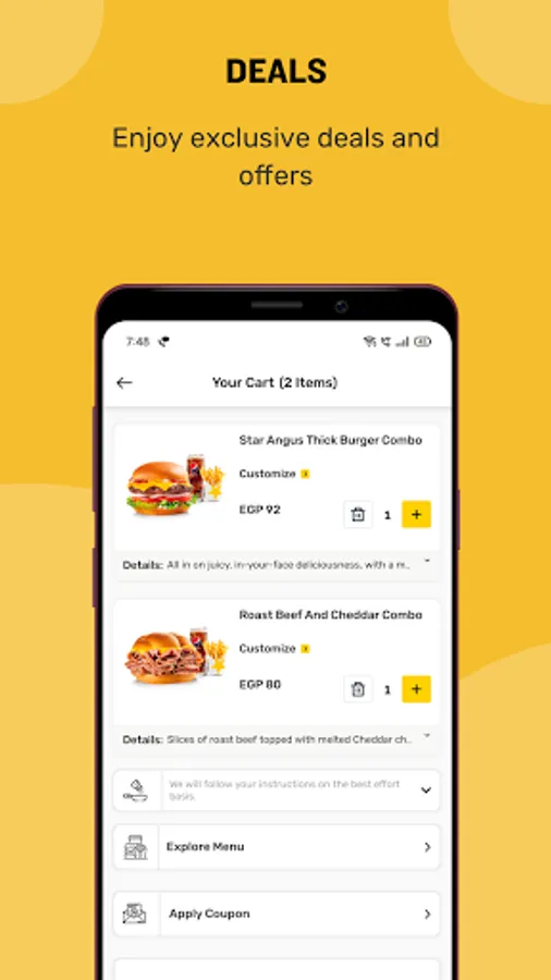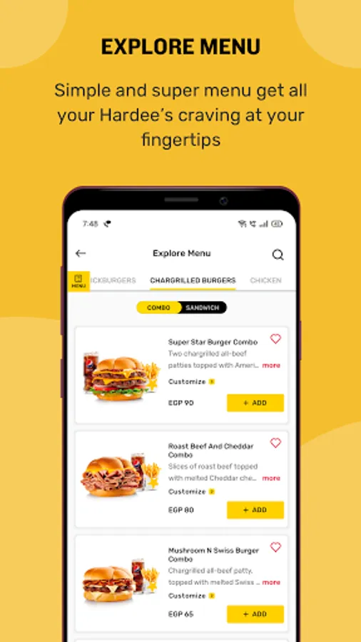 Hardee’s Egypt food app is now available on your fingertips. Ordering food online has never been this exciting. Indulge in our 100% Angus beef thickburger, chargrilled burgers, beef sandwiches & more from the comfort of your home. Avail tempting deals and offers now at the Hardee's restaurant near you.