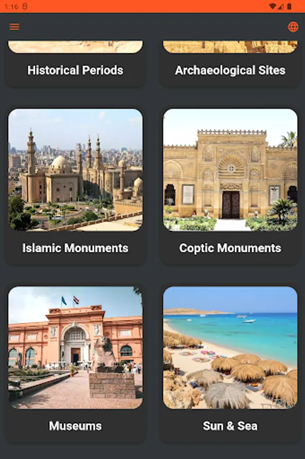Visit Egypt App that guides you throughout your trip to Egypt app included sections like