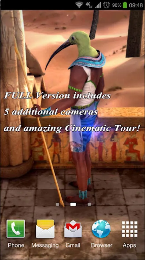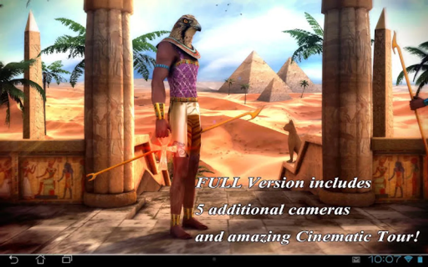 Absolutely realistic ancient Egypt on your phone screen! Witness famous Egypt Gods in full 3d with 5 cameras! Fantastic scene include pyramids, sculptures, trees done in full 3d. Whole power of ancient civilization will power up your device!