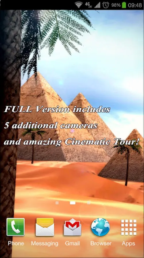 Installation: The main screen (long press) → Live Wallpaper →Egypt 3D Free live wallpaper