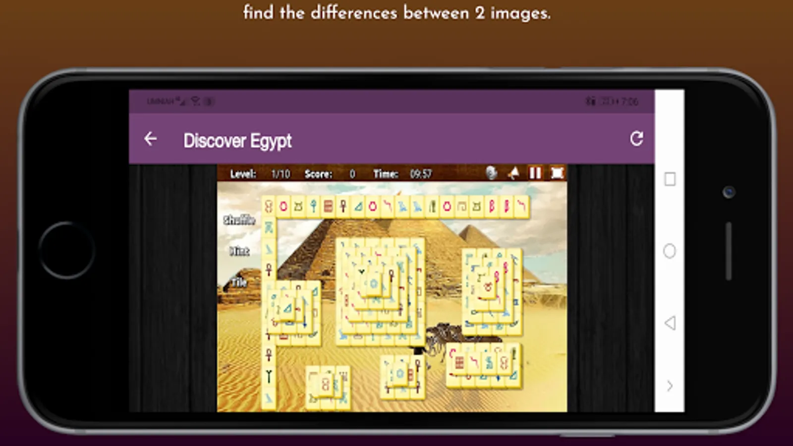 Discover Egypt in this Mahjong. In the mahjong game you have to pair the same free tiles to remove those tiles. In the difference game you have to find the differences between 2 images.