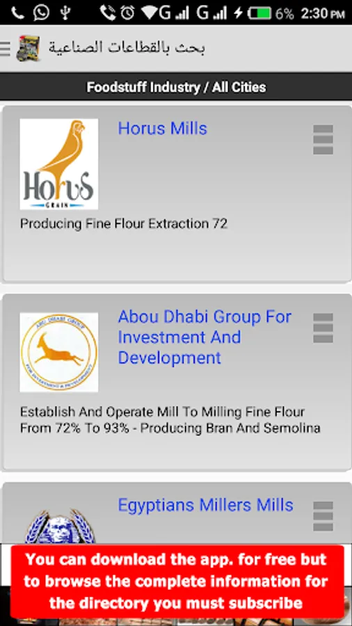 يتضمن التطبيق عمليات الشراء التي تتيح لك الوصول إلى جميع المصانع مع المعلومات والبيانات الخاصة بها كاملة بدون حذف.