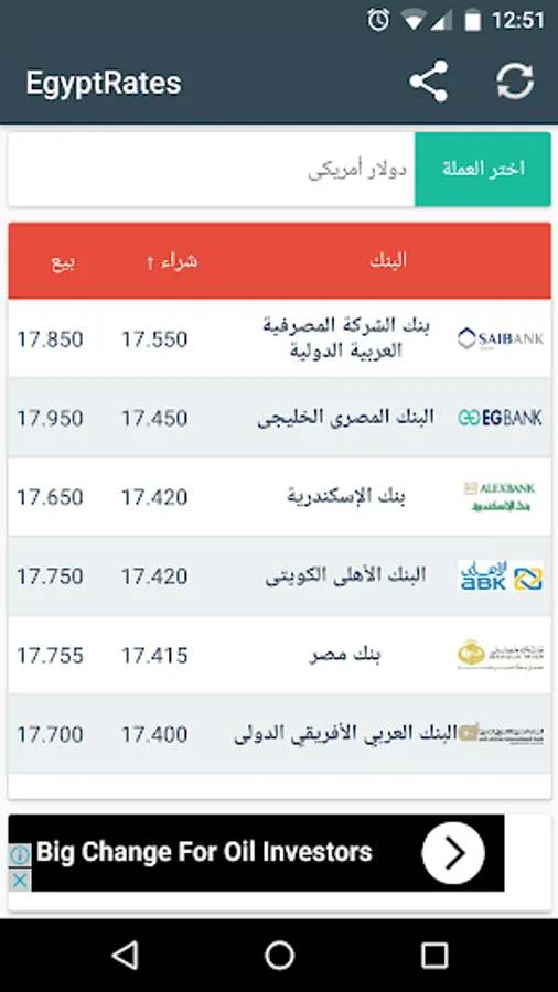 The application contains more than 20+ banks and is constantly updated as it contains all the currencies circulating in Egypt.