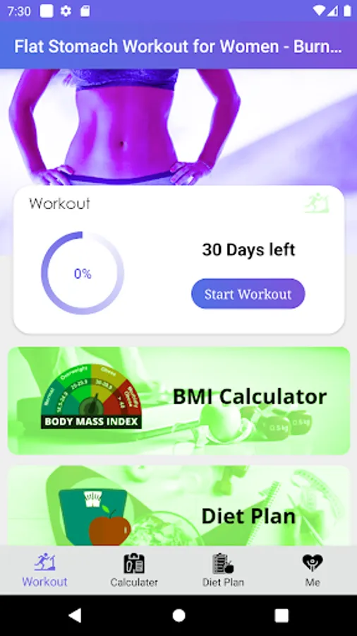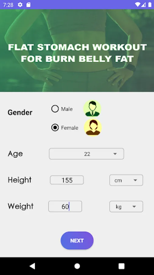 You don't need a gym or equipment with the Losing Weight: Belly fat app.