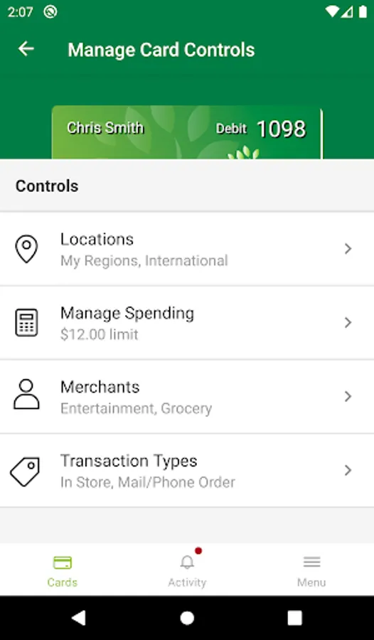 • Receive alerts when your debit card is used, approved, or exceeds the transaction controls set by you