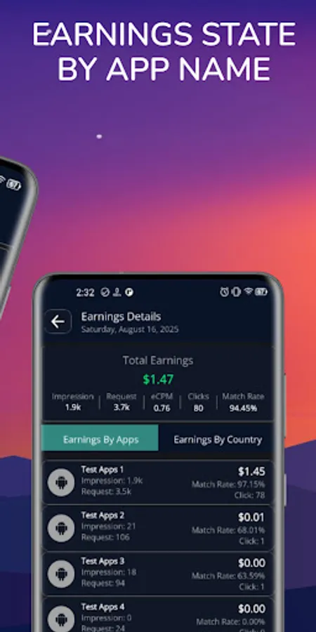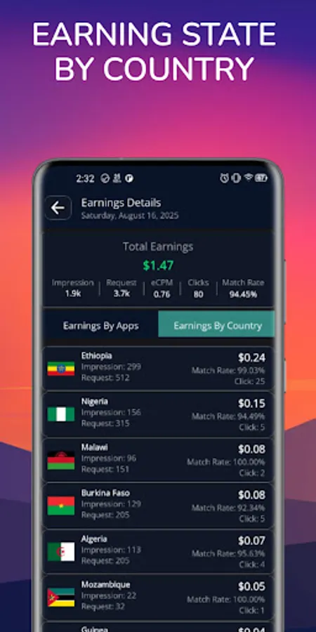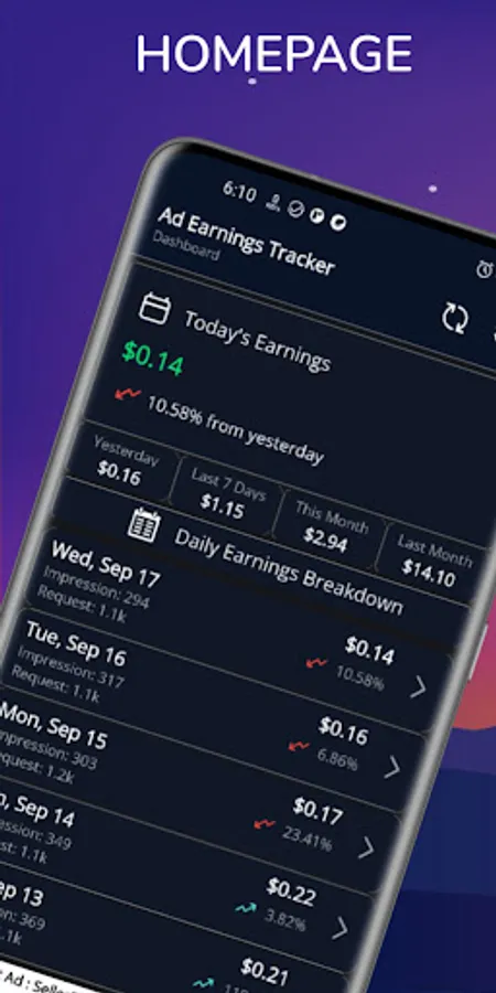 Ad Earnings Tracker is a simple Android app designed to help you view and manage your advertising revenue and stats in one place.