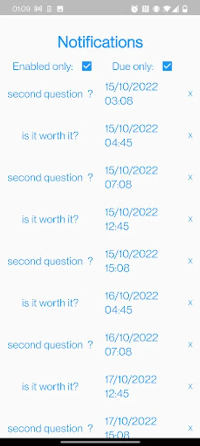 An app to remember. Create memory/questions which are prompted to the user in scheduled notifications to remember something.