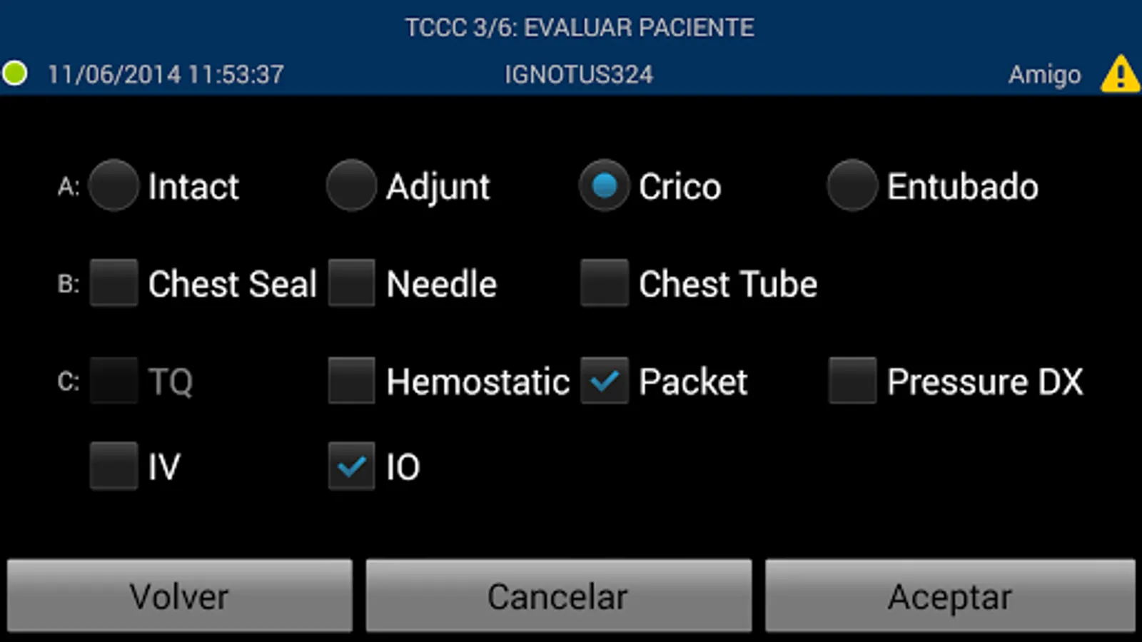 This App allows you to fill in a very fast way the forms of Tactical Combat Casuality Care. Then you could share this data by any kind of Android Messaging App (like Whatsapp).