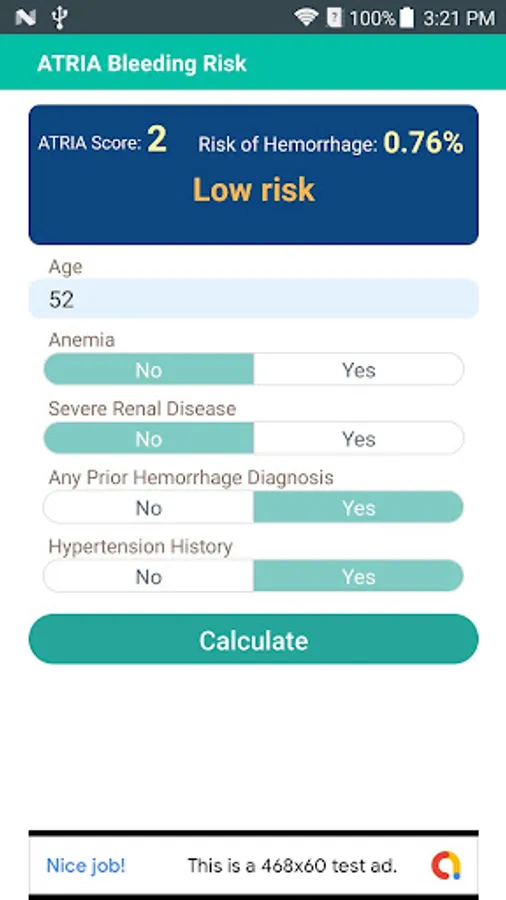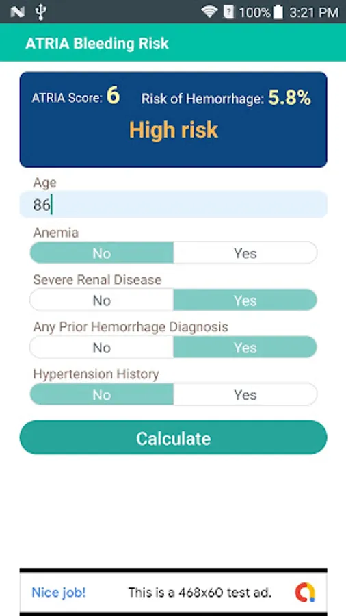 This app can calculate your ATRIA bleeding risk score from your answers on five questions and provide an assessment of your risk.