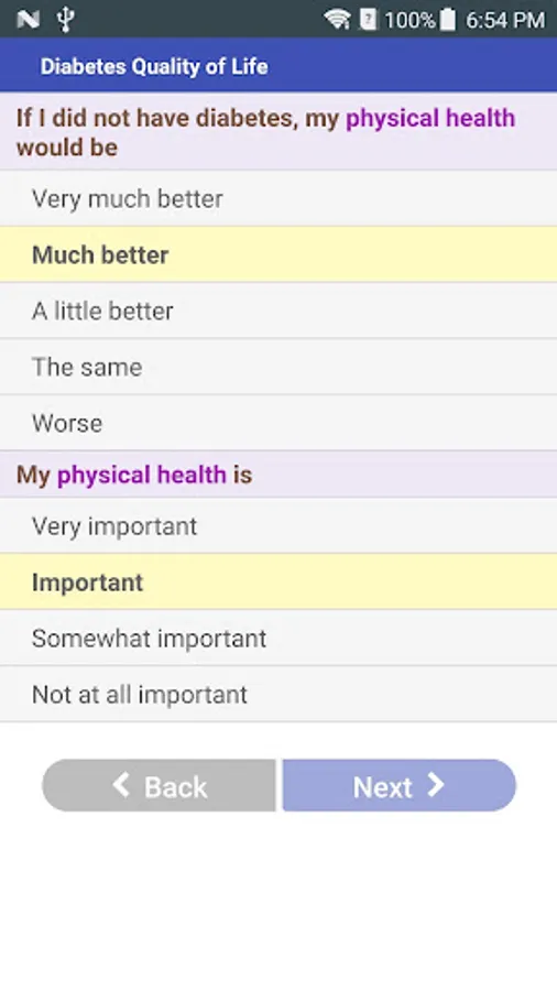 This app presents a 19-item diabetes related questionnaire and calculates the Diabetes Quality of Life score based on the answers.